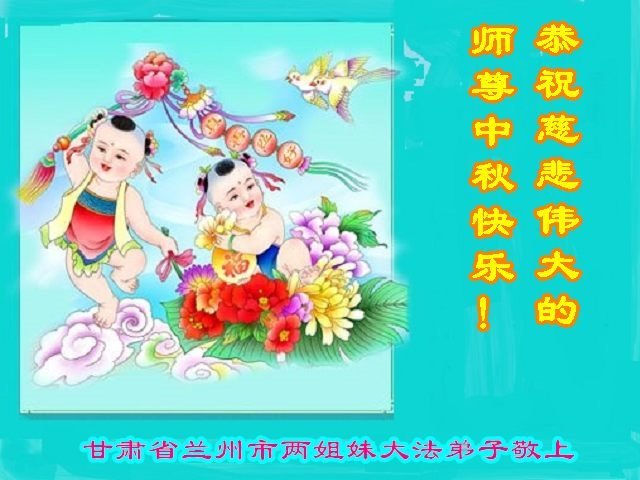 恭祝慈悲伟大的师尊中秋快乐! 甘肃省兰州市两姐妹大法弟子敬上 甘肃省兰州市一学法小组大法弟子恭祝慈悲伟大的师尊中秋快乐!