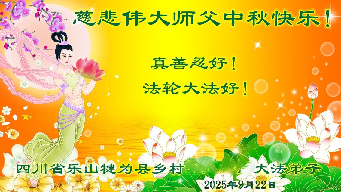 恭祝师尊中秋节快乐! 河南省西平县某乡镇全体大法弟子敬上 2025年9月21日 吉林省长春地区一农村乡镇全体大法弟子恭祝师尊中秋节快乐!
