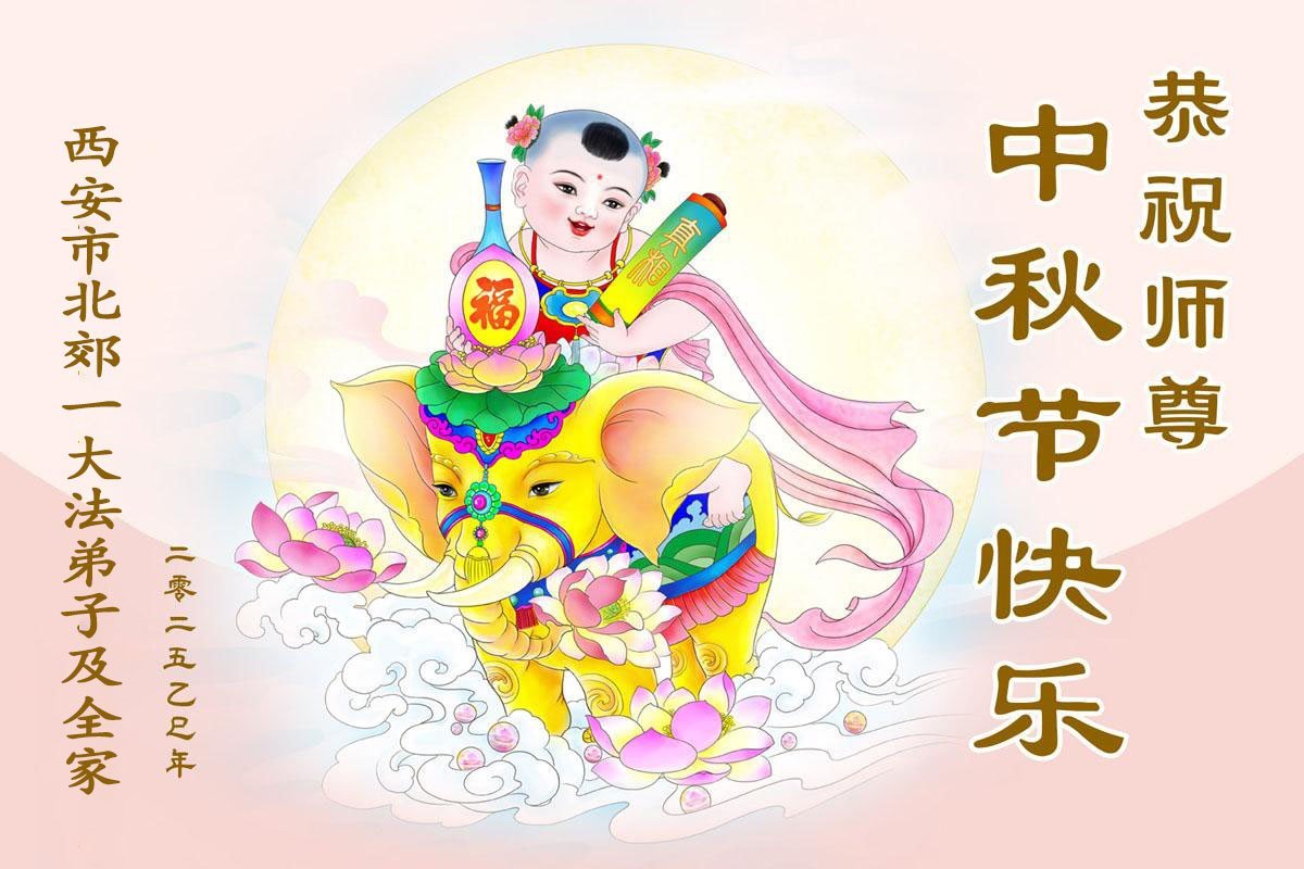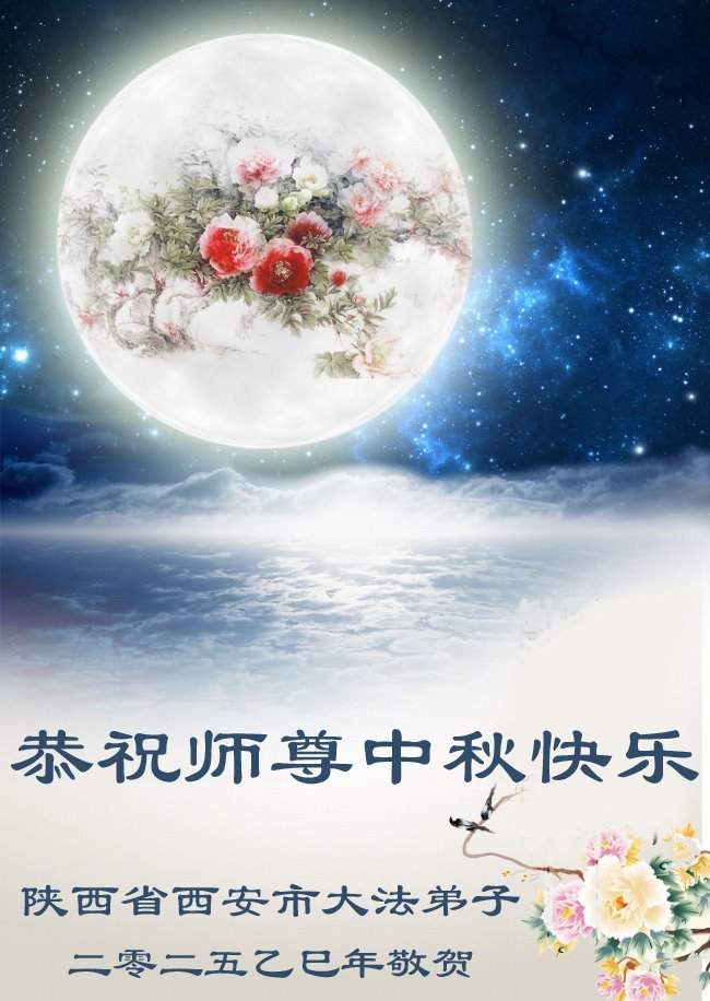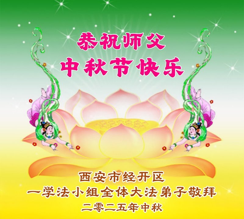 【明慧网二零二五年十月二日】 陕西省西安市经开区一学法小组全体大法弟子恭祝师父中秋节快乐!