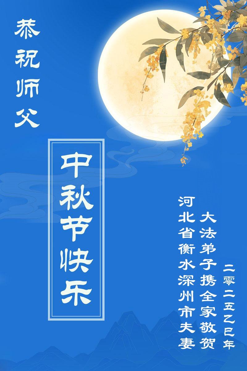 恭祝师尊中秋快乐!弟子们想师尊了! 河北省衡水市深州市全体大法弟子敬上 二零二五年九月二十六日 河北省沧州市大法弟子恭祝师尊中秋愉快!