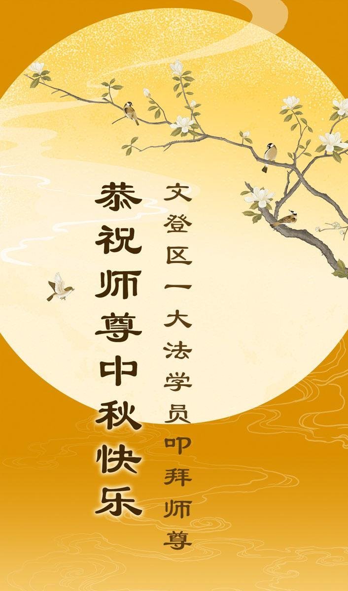 山东省威海市文登区一大法学员恭祝师父中秋快乐!