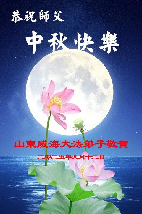 感谢师尊的慈悲救度!您为众生付出了一切,您为弟子承受了一切。弟子唯有做好三件事,精進实修,做一名合格的大法弟子。弟子跪拜师尊! 山东省威海市大法弟子恭祝师尊中秋节快乐!