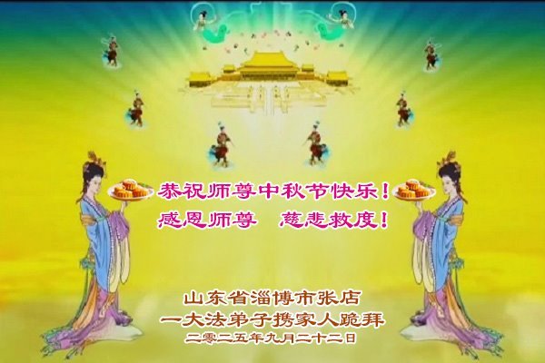 师尊您辛苦了!感恩师尊慈悲救度!我们把这无尽的感恩化作精進的动力,修好自己,助师救人,跟师父回家。 山东大法弟子恭祝师尊中秋快乐!