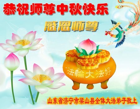弟子感恩师尊慈悲救度! 山东省济宁市梁山全体大法弟子恭祝师尊中秋快乐!