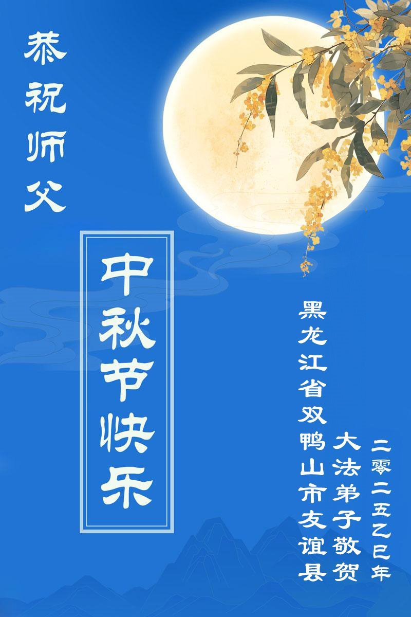 【明慧网二零二五年十月二日】 黑龙江省绥化市大法弟子恭祝师尊中秋节快乐!