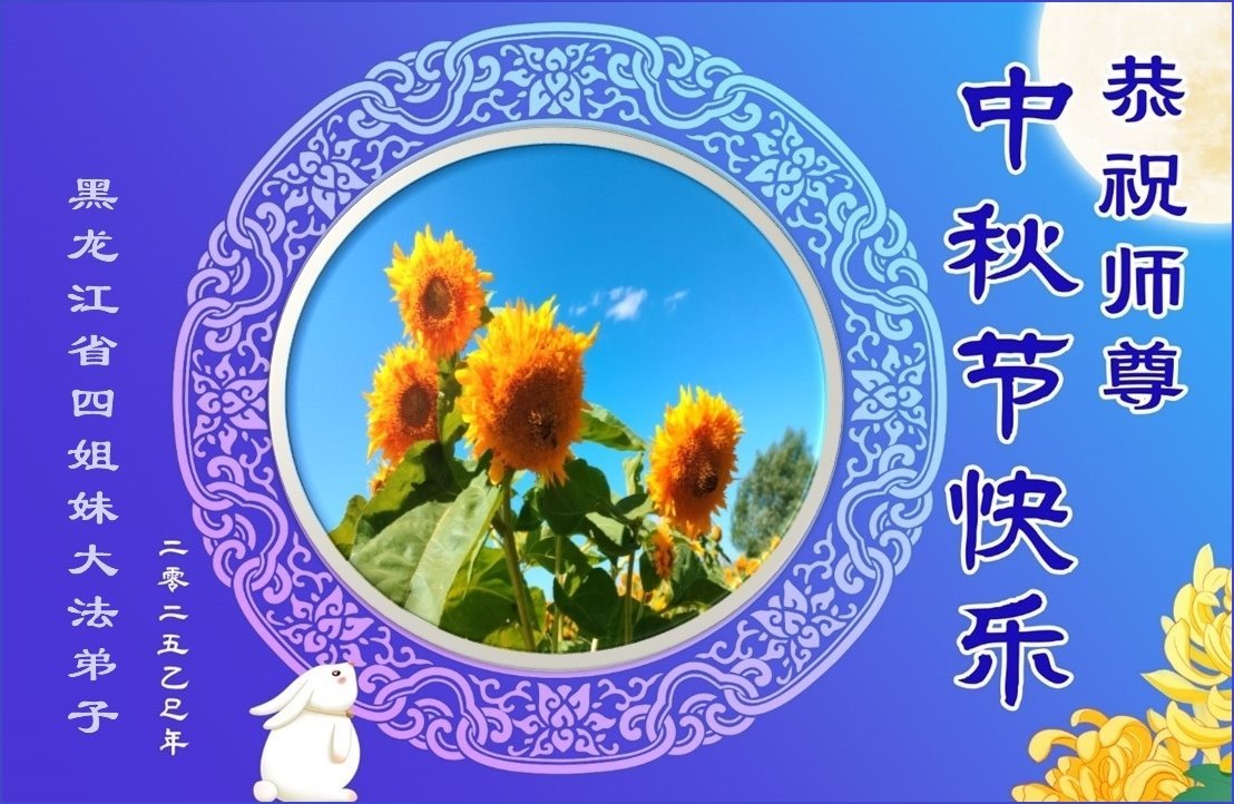 【明慧网二零二五年十月二日】 黑龙江省七台河姐妹俩大法弟子恭祝师尊中秋快乐!