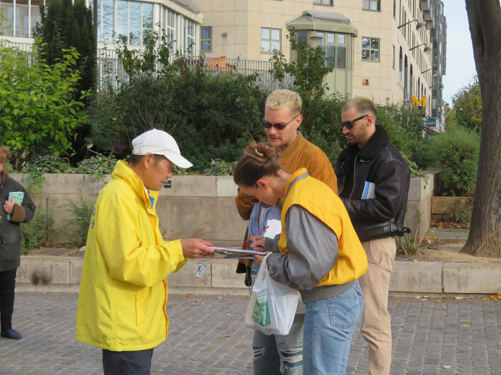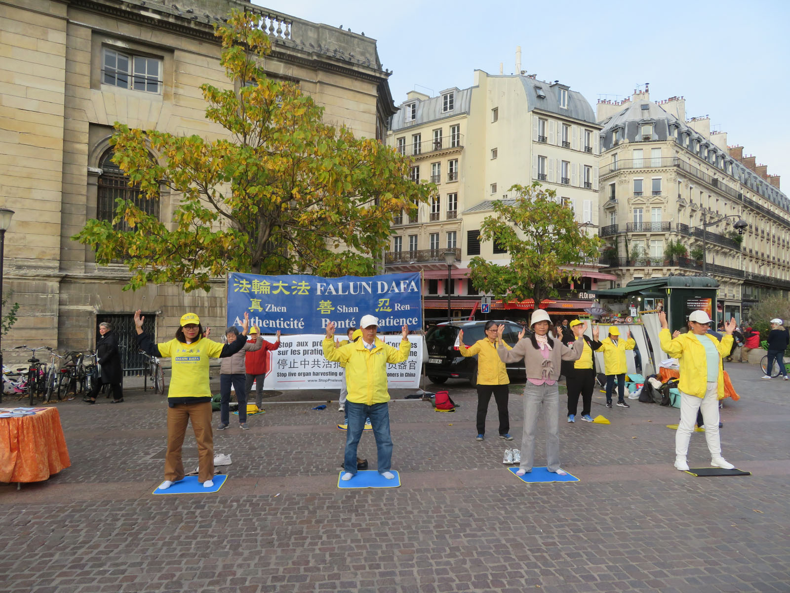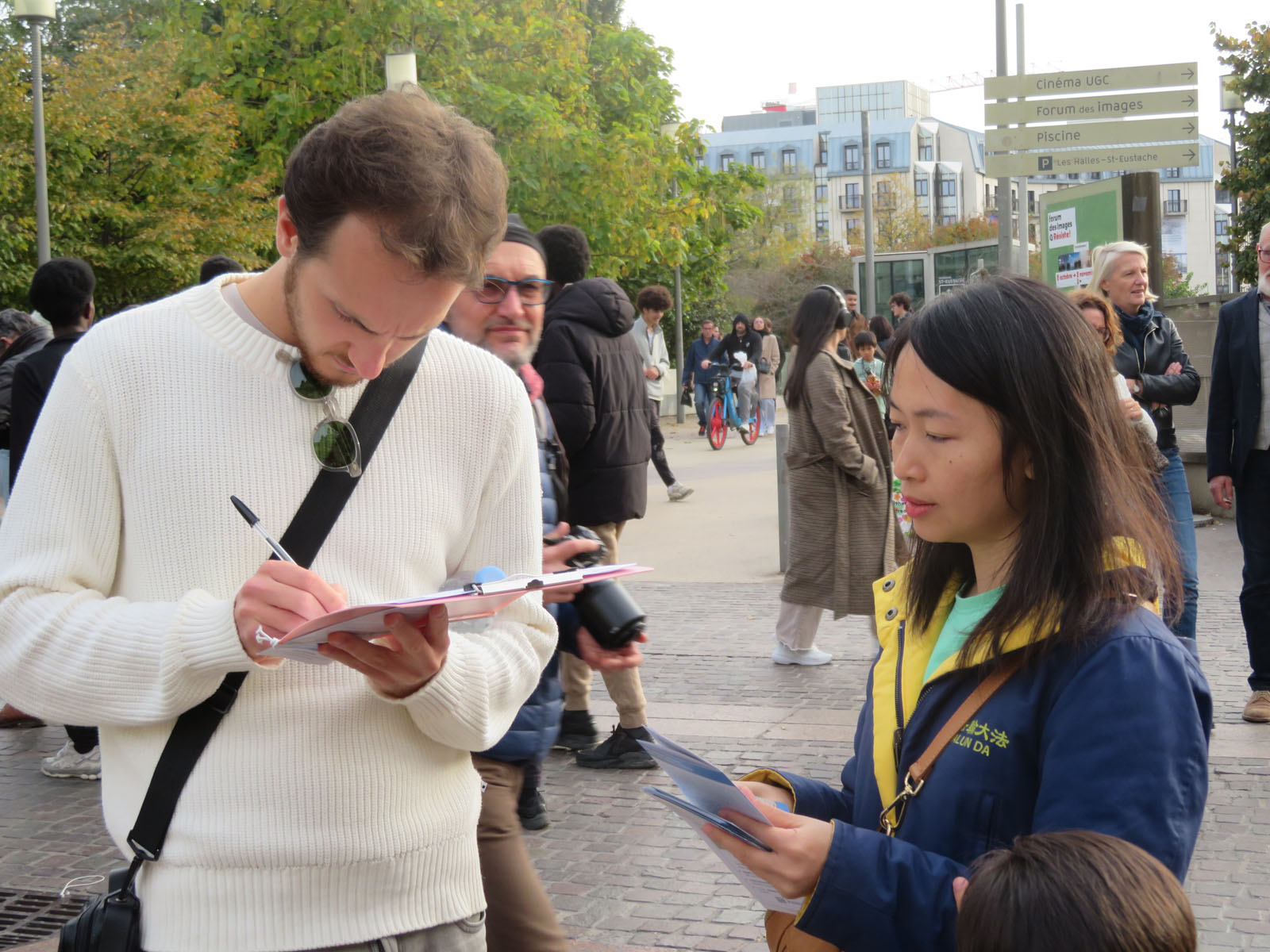 | 【明慧网二零二五年十月二十一日】二零二五年十月十八日星期六下午,法轮功学员再次来到巴黎中心的夏特莱街区,向人们介绍法轮功及中共对法轮功学员长达二十六年的迫害。当天天气晴朗,人流不断。很多人得知法轮功被迫害真相后,在反迫害征签表上签名,都想要为停止迫害出一把力。 上一个周末即十月十日至十二日,法轮功学员参加了法国西部南特市举办的健康与有机食品沙龙,他们向来宾介绍法轮功并教功,受到群众的欢迎。  图1~4:二零二五年十月十八日星期六下午,法轮功学员再次来到巴黎中心的夏特莱街区弘法。 |