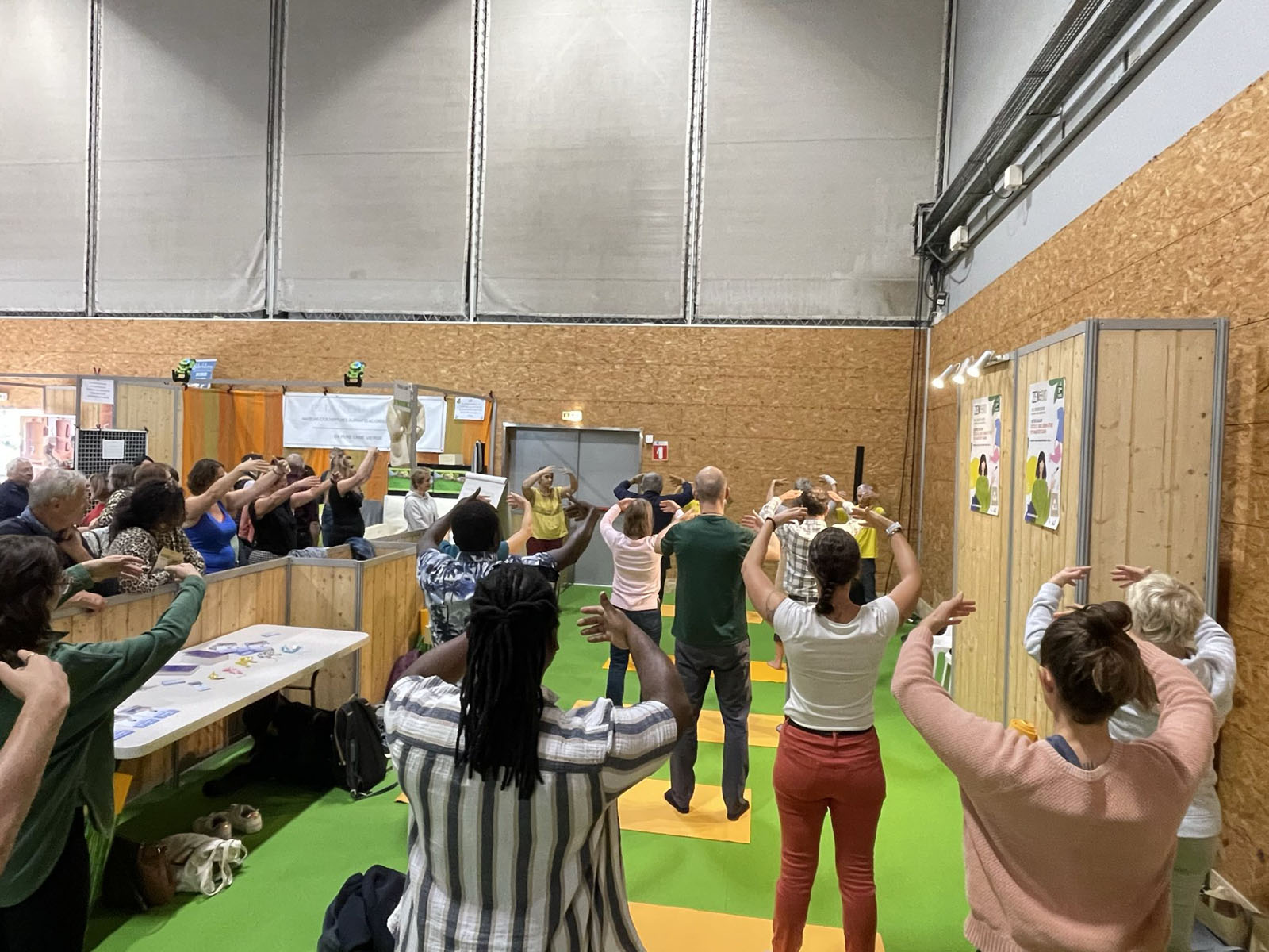 法轮大法也称法轮功,是一种古老的修炼方法,包括五套功法,以真、善、忍价值观为修炼准则。其主要著作《转法轮》翻译成五十种语言出版。 在三天的展览会上,主办方每天提供一个半小时,让法轮功学员向到访者集体教功。这一活动吸引了很多来访者。炼功中,有的人感到身体舒适,有的人感受到法轮功的能量,很多人都索取了法轮功传单和南特炼功点的地址,准备去炼功点炼功。