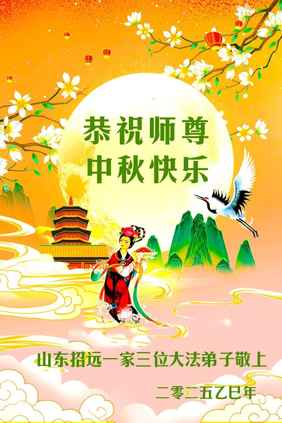 恭祝慈悲伟大的师尊中秋节快乐! 山东省威海大法弟子敬上 山东省邹平市两位老年大法弟子恭祝师尊中秋节快乐!