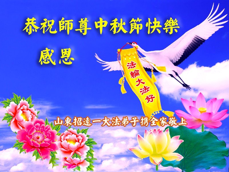 天地更新,苍穹再造,能成为大法弟子, 弟子一定不辱使命,用心做好三件事,让师父少操点心。 山东省招远市一大法弟子敬上 山东省烟台市招远市一家三位大法弟子恭祝师尊中秋节快乐!