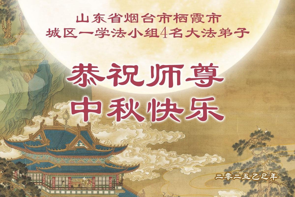 【明慧网二零二五年十月三日】 山东省烟台栖霞城区一学法小组四名大法弟子恭祝师尊中秋节快乐!