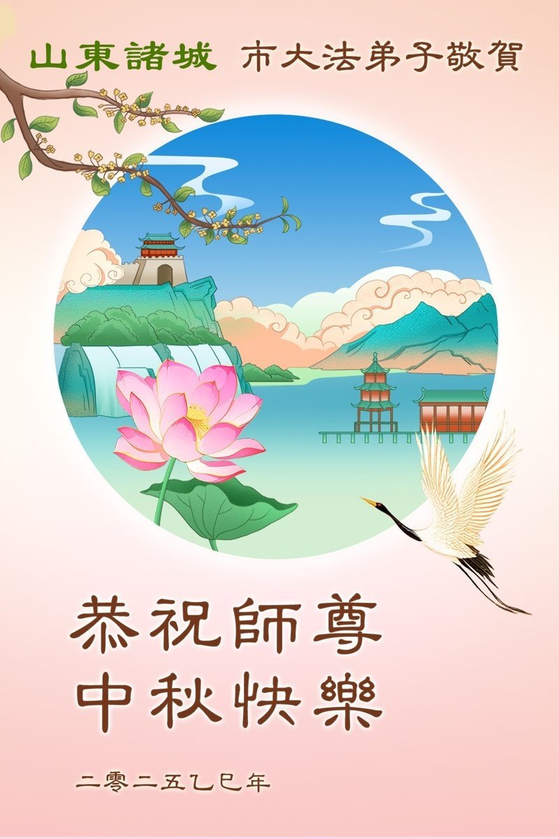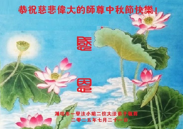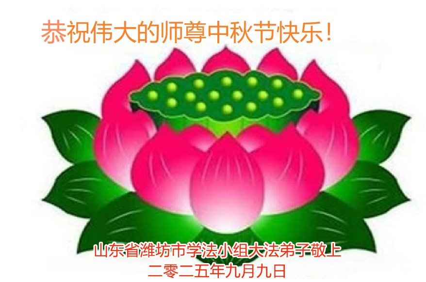 【明慧网二零二五年十月三日】 山东省潍坊市一大法弟子及全家恭祝慈悲伟大的师尊中秋节快乐!