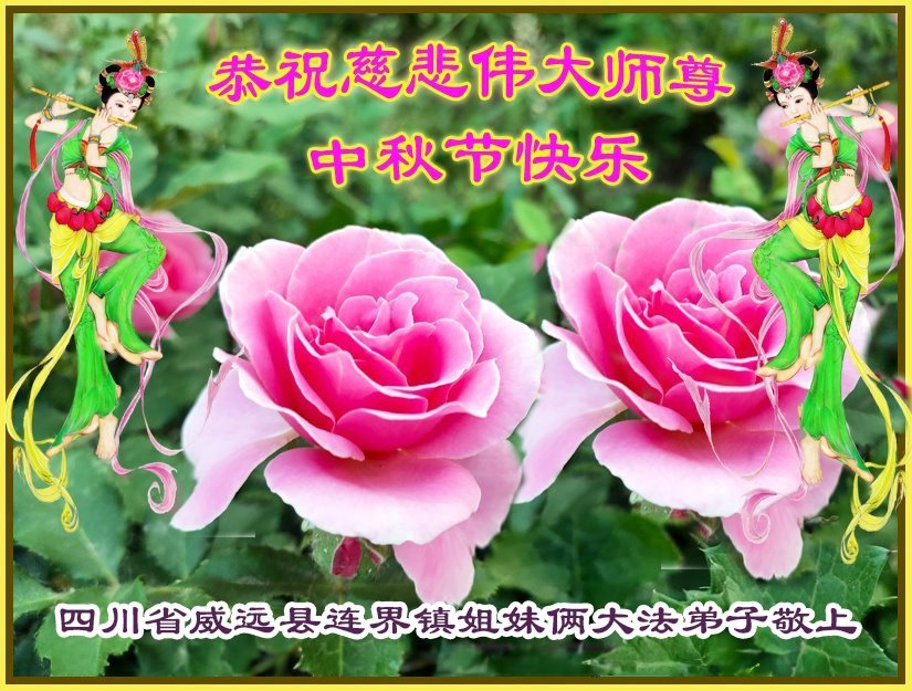 四川省内江市威远县连界镇姐妹俩大法弟子恭祝慈悲伟大师尊中秋节快乐!