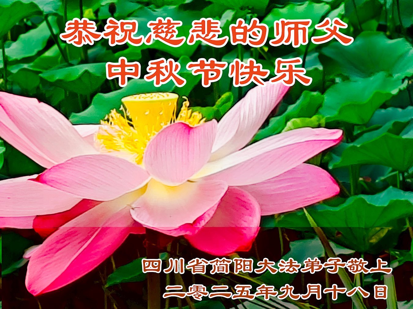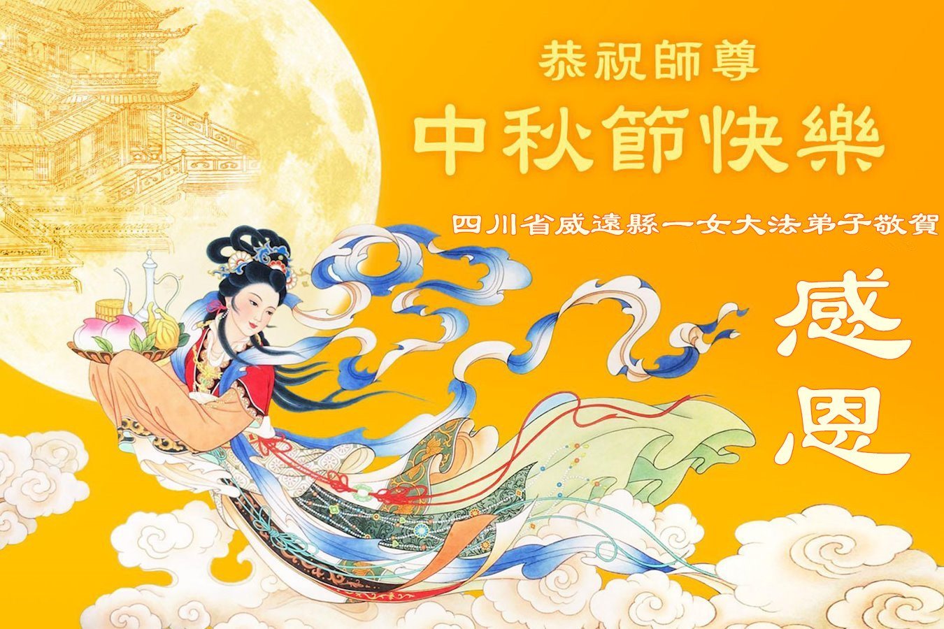 恭祝慈悲伟大的师尊中秋节快乐!师父您辛苦了!弟子们一定修好自己,学好法、做好三件事、多救人,不辜负师尊的教诲。 四川简阳大法弟子敬上 四川省达川市大法弟子恭祝师尊中秋节快乐!