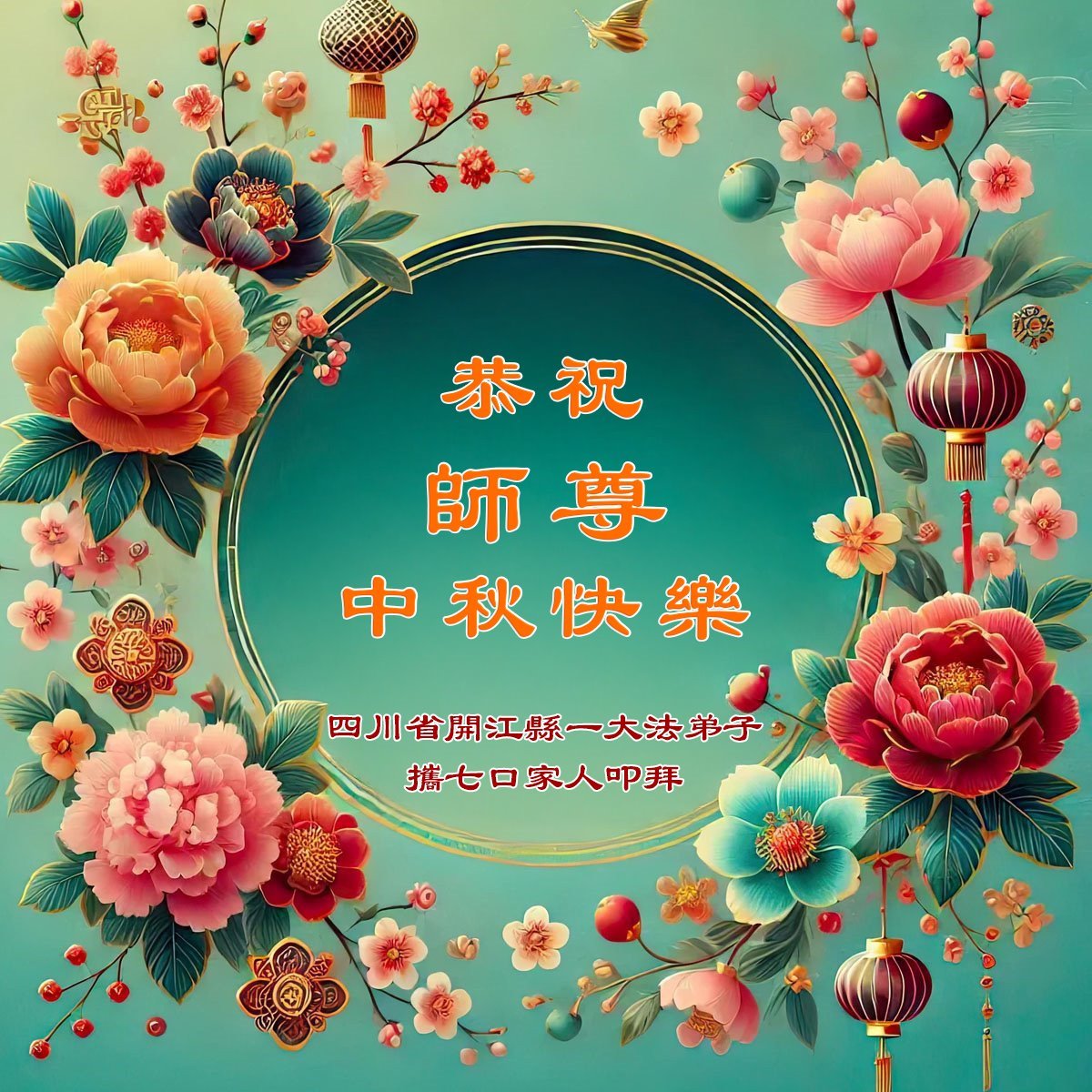 【明慧网二零二五年十月三日】 四川省达州市开江县一大法弟子携五口家人恭祝师尊中秋节快乐!