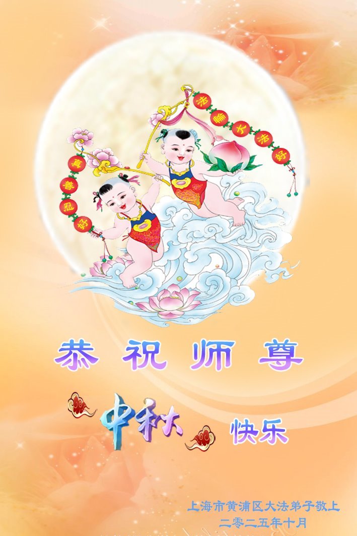 春夏秋冬,月圆月缺,一年又一年,感恩师尊慈悲救度。弟子决心坚修大法不动摇,修好自己,多救众生。恭迎师尊早回大陆! 上海夫妻大法弟子敬上 二零二五年九月二十七日 上海一女大法弟子恭祝师尊中秋节快乐!