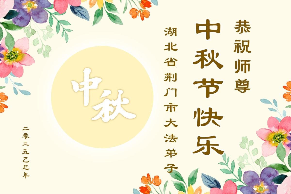 中秋佳节倍思亲,感恩师尊的慈悲救度。我们一定会学好法,多发正念,形成整体,利用一切机会多救人,走好最后的修炼路,跟师尊返回真正的家园。 湖北省荆门市大法弟子恭祝慈悲伟大的师尊中秋节快乐!