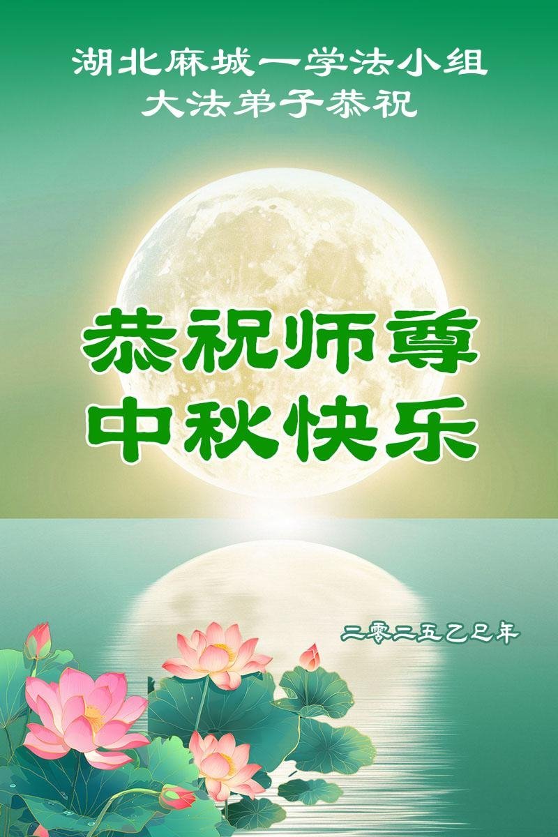敬请师尊放心,弟子会在最后剩下不多的时间里,更加理智的做好弟子该做的三件事:多学法,向内找,发好正念多救人。在修炼的路上奋起直追,跟师尊回家! 湖北省黄冈市浠水县一大法弟子率全家人敬上 二零二五年九月二十二日 湖北省黄冈市麻城市全体大法弟子恭祝慈悲伟大的师尊中秋快乐!