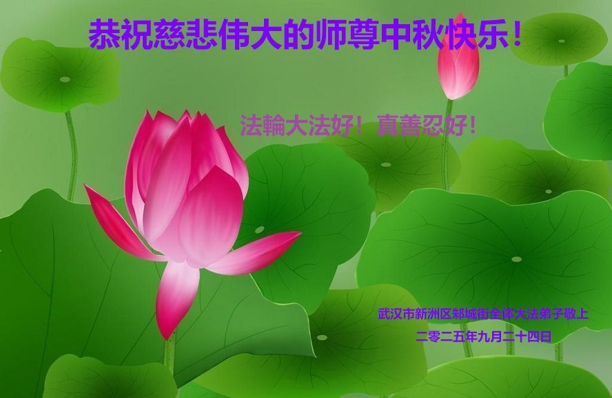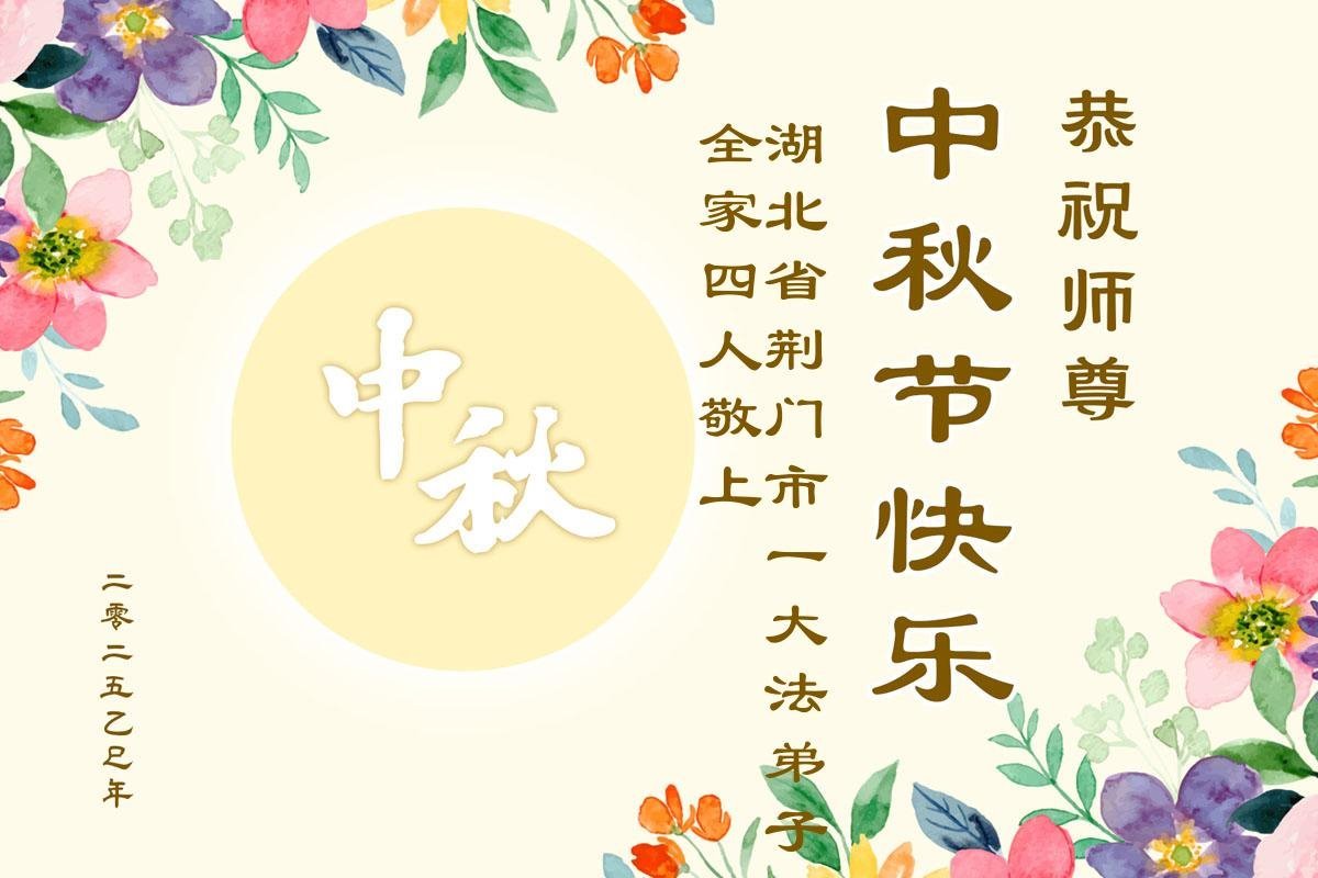 恭祝慈悲伟大的师尊中秋节快乐! 师尊您辛苦了! 感谢师尊的慈悲救度! 湖北省咸宁市一家庭中所有大法弟子敬上 2025年9月23日 湖北省襄阳市全体大法弟子恭祝师父中秋节快乐!