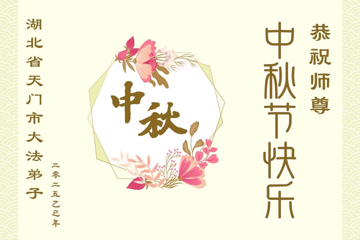【明慧网二零二五年十月三日】 湖北省黄冈市浠水县一大法弟子率全家恭祝师尊中秋节快乐!