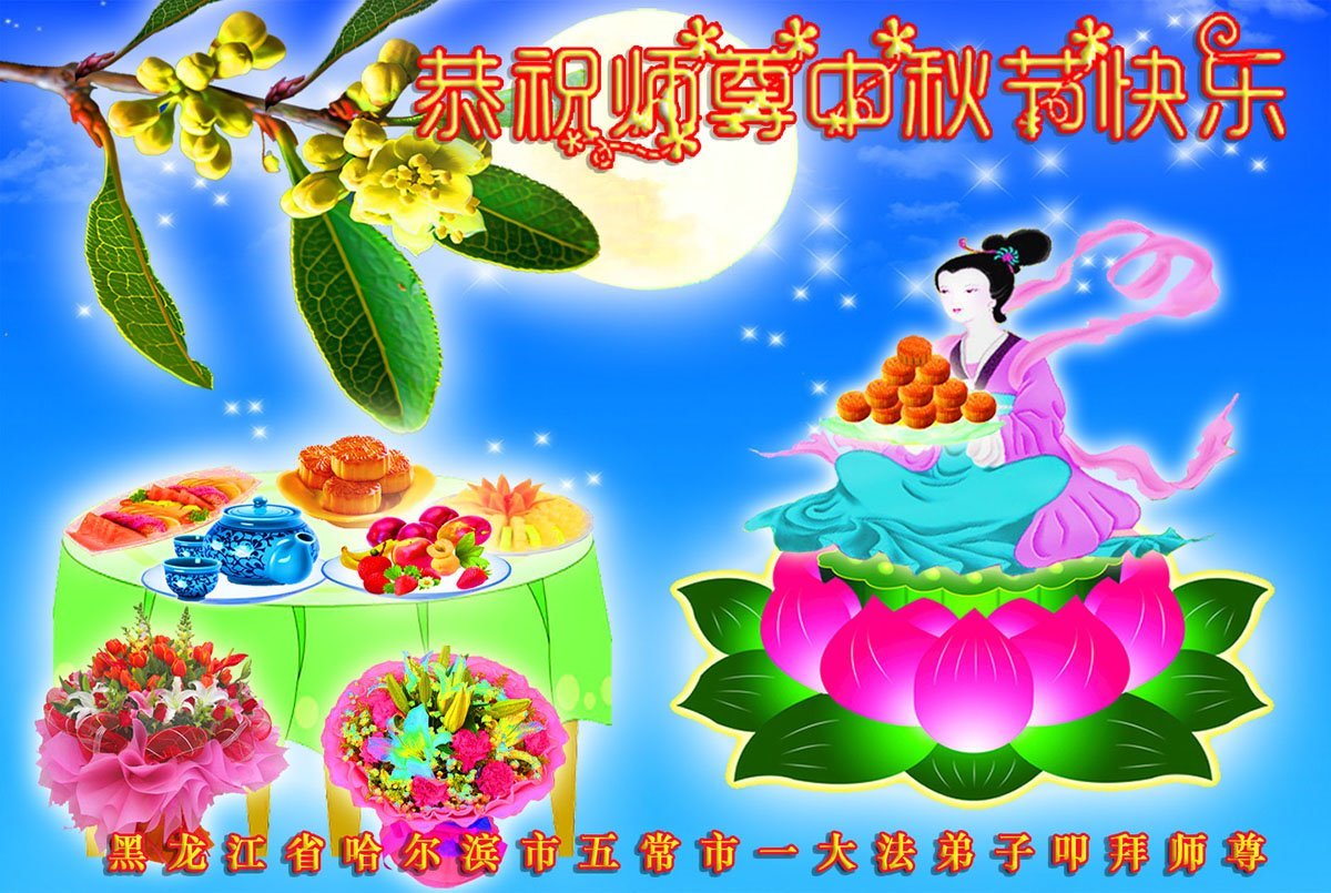 【明慧网二零二五年十月三日】 黑龙江省哈尔滨市五常市一大法弟子恭祝师尊中秋快乐!