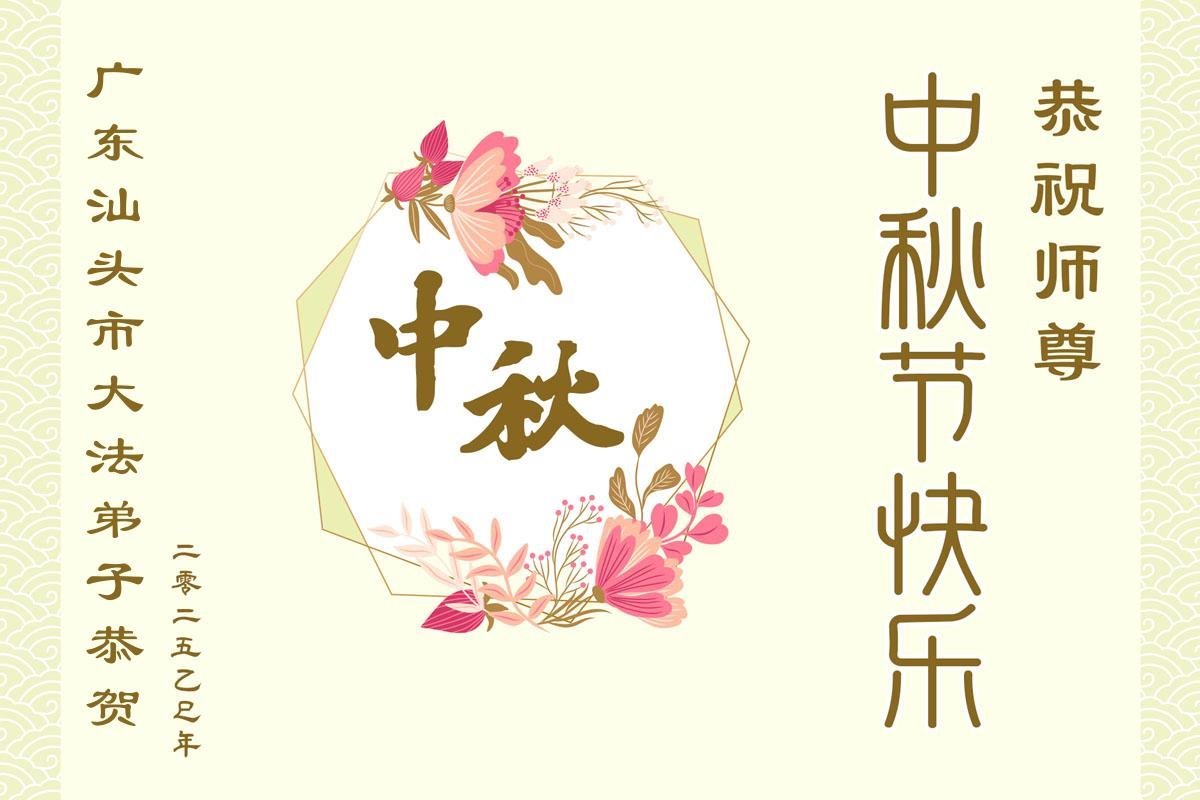 【明慧网二零二五年十月三日】 广东省汕头市大法弟子恭祝慈悲伟大的师尊中秋快乐!