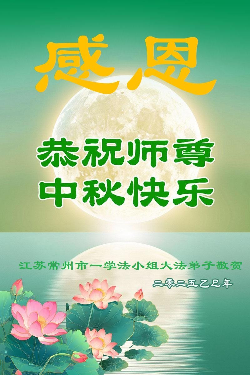 慈悲伟大的师父好!您辛苦了!在中秋佳节来临之际,感谢师父对我们全家的慈悲救度! 江苏常州、无锡一学法小组大法弟子恭祝师父中秋快乐!