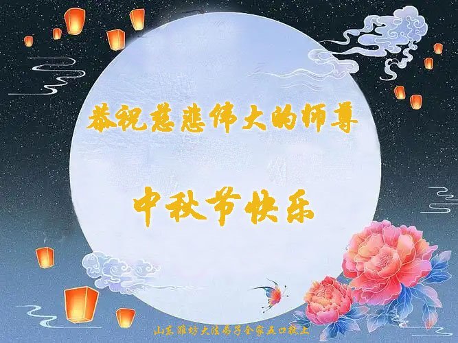 感恩师尊的慈悲苦度!弟子唯有精進实修报师恩。 山东省潍坊市诸城市一大法弟子恭祝师尊中秋快乐!