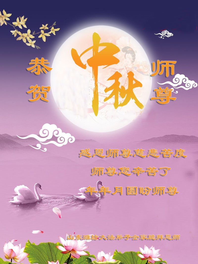 恭祝师尊中秋快乐! 山东省临朐县一夫妻大法弟子敬上 山东省潍坊市高密市一大法弟子全家恭祝师父中秋快乐!