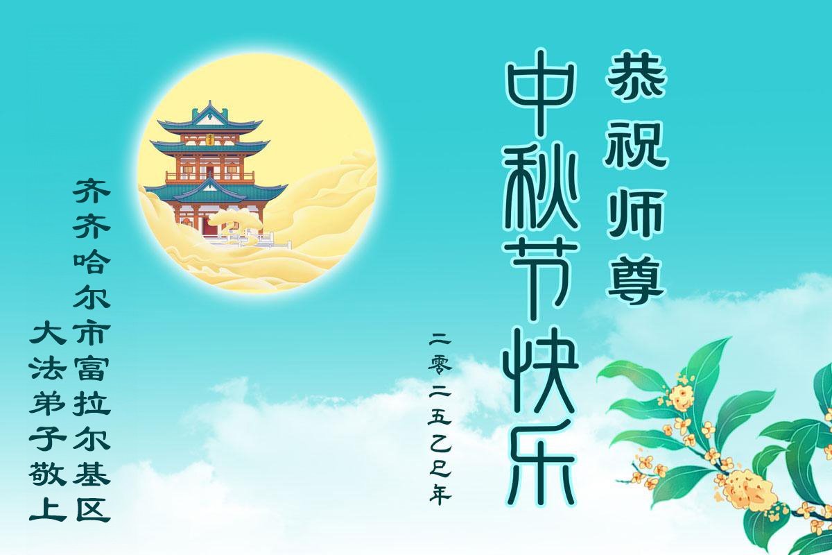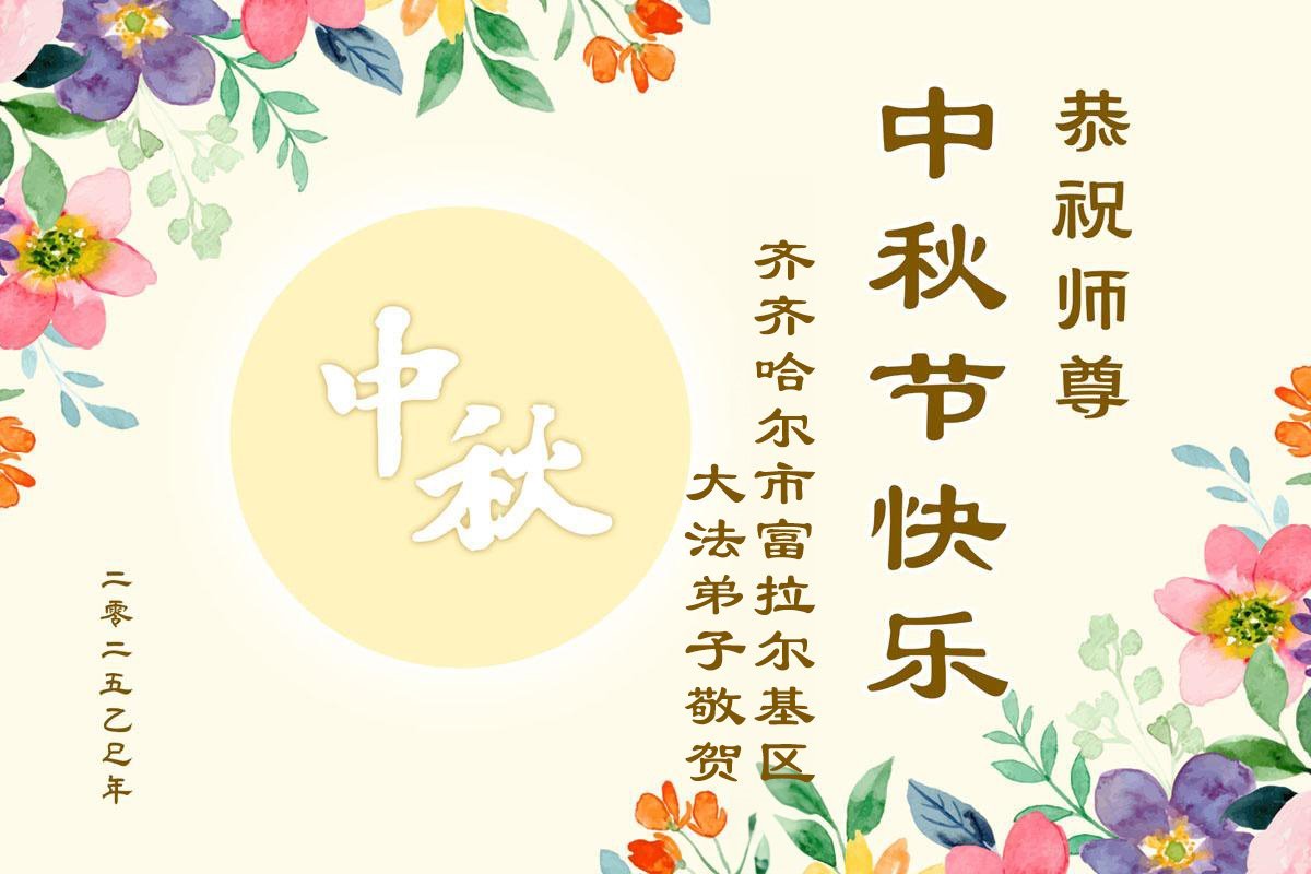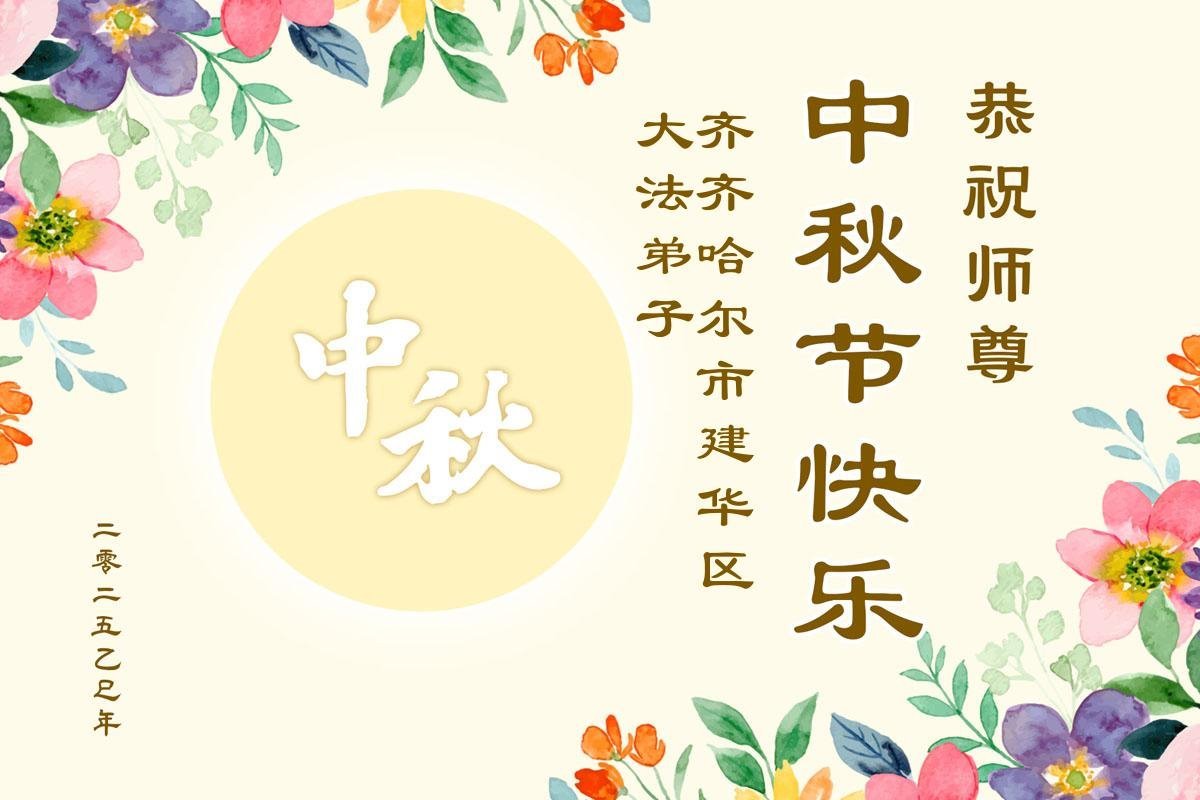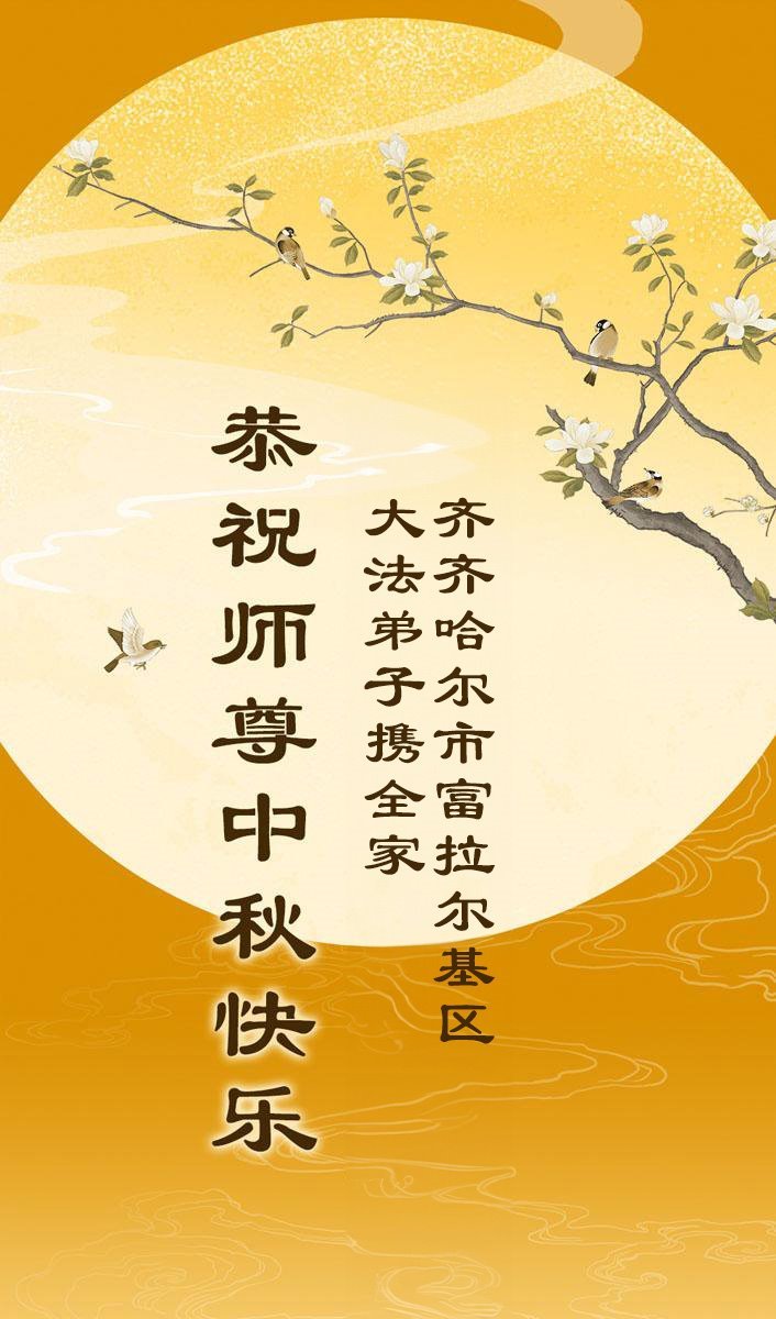恭祝师尊中秋节快乐! 又是一年秋月圆,思亲念归漾心田。感恩师父慈悲度,辛勤保护亿万年。千言万语无法表达师尊每一步的保护与点化,孤独中唯有信师信法走好每一步,不负师尊的救度,叩谢师尊的浩荡洪恩! 黑龙江省齐齐哈尔市富拉尔基区大法弟子敬上 二零二五年九月二十七日 黑龙江省齐齐哈尔市富拉尔基区姐妹大法弟子恭祝师尊中秋节快乐!