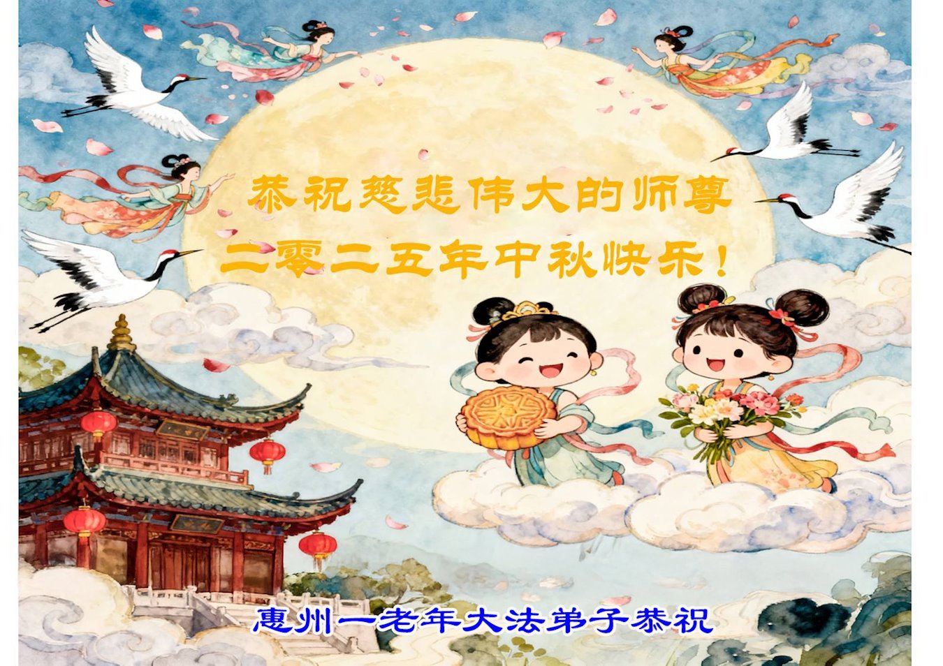 【明慧网二零二五年十月三日】 广东省惠州市一老年大法弟子恭祝师尊中秋快乐!