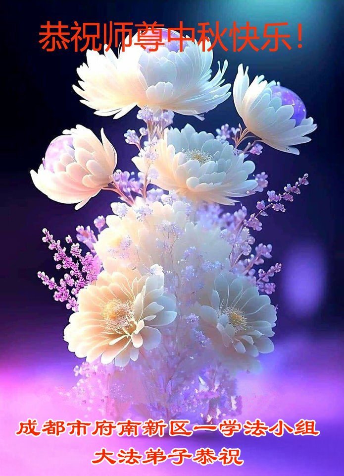 恭祝慈悲伟大的师尊中秋快乐! 四川省成都市东区一大法弟子及女儿敬上 二零二五年九月二十七日 四川省成都广福桥一学法小组大法弟子恭祝慈悲伟大的师父中秋快乐!