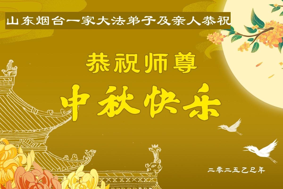 山东烟台一家大法弟子及亲人恭祝师父中秋节快乐!