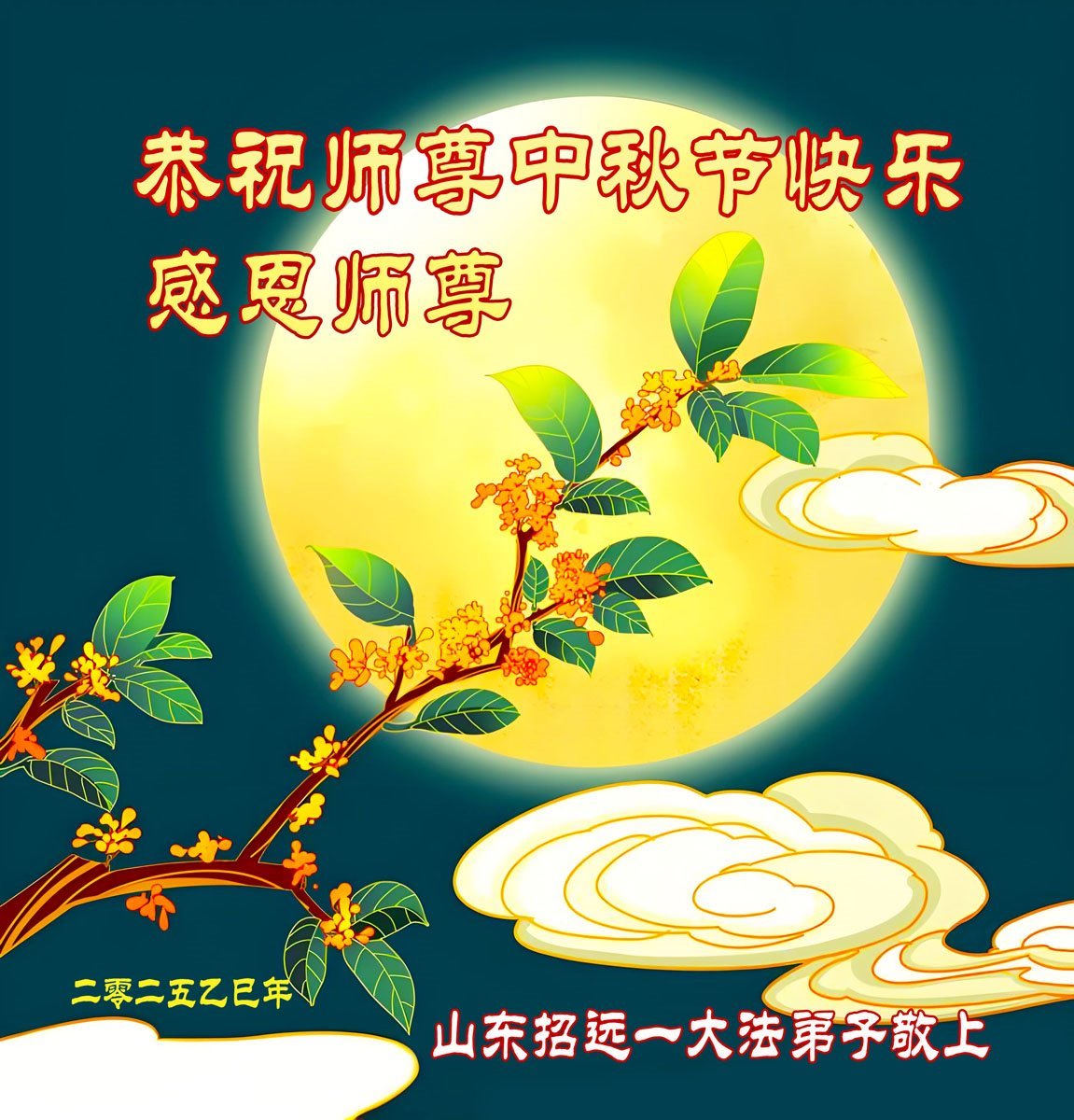 恭祝慈悲伟大的师尊中秋快乐! 师尊您好!师尊您辛苦了!叩拜恩师! 八月十五月儿圆,眺望远方泪涟涟。 中秋佳节盼师尊,盼望师尊归中原。 不忘师尊慈悲度,完成使命随师还。 山东省招远市区三姐弟大法弟子敬上 二零二五年九月 山东省烟台市招远市区一大法弟子恭祝师尊中秋快乐!