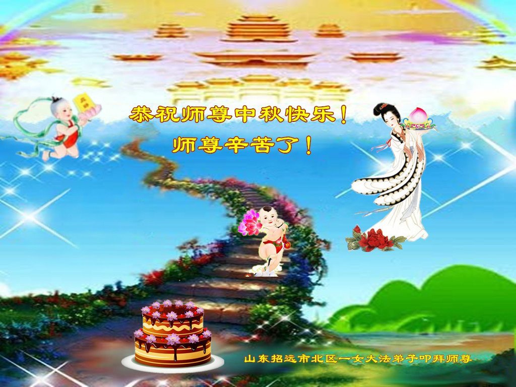 感恩师父时时看护着弟子!弟子无以回报,只有精進实修,不负师恩。 山东省烟台市招远市大法弟子恭祝慈悲伟大的师尊中秋节快乐!