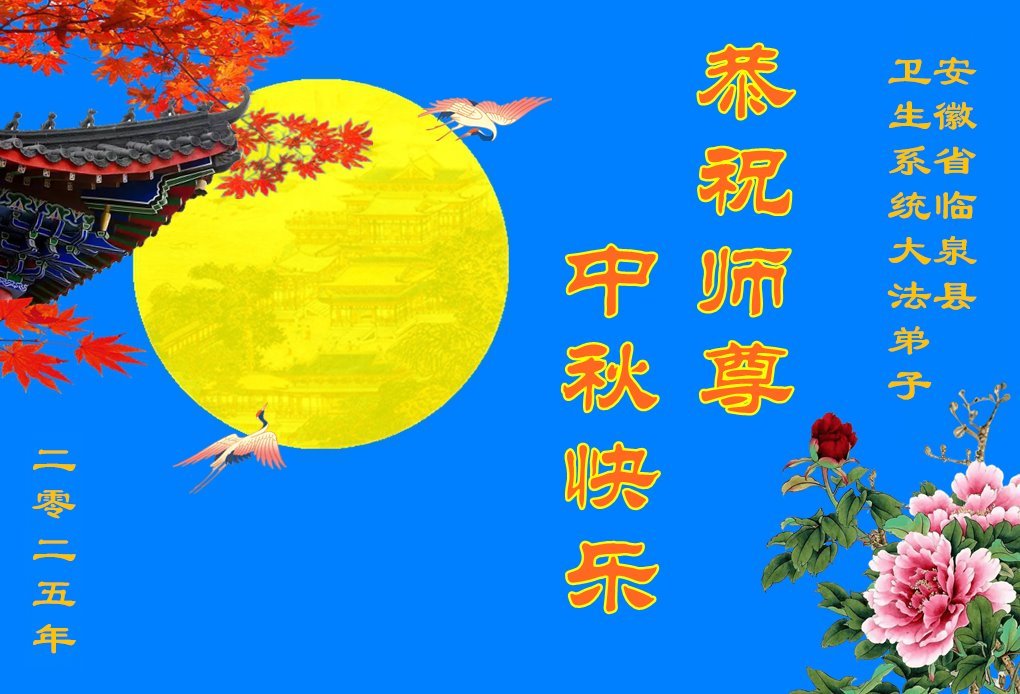 安徽省阜阳市临泉县卫生系统大法弟子恭祝师尊中秋快乐!
