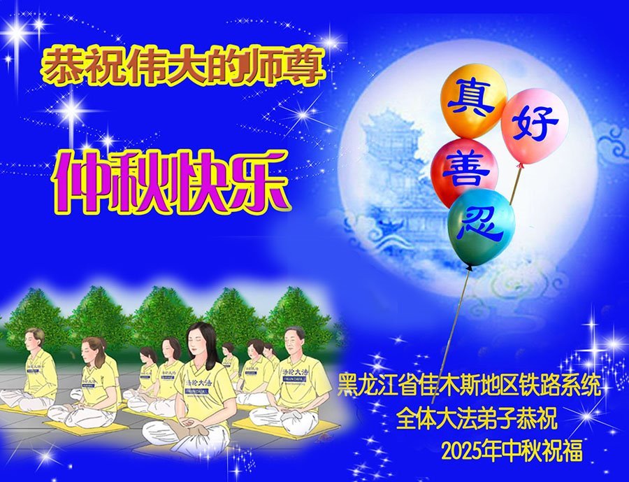 我们一定紧跟正法進程,多学法,多救人,做好三件事,修好自己的一思一念。弟子跪拜谢师恩! 黑龙江省佳木斯铁路系统大法弟子恭祝伟大的师尊中秋快乐!