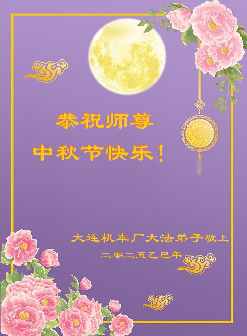 恭贺师尊中秋节快乐! 弟子一定要努力实修,做好三件事。不负师尊的慈悲救度,完成使命! 辽宁省大连机车厂大法弟子恭祝师尊中秋快乐!