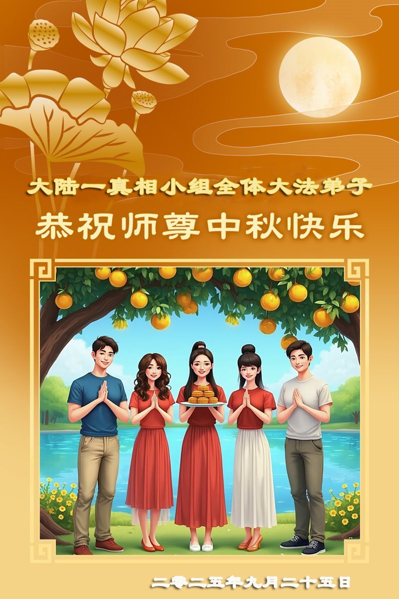 恭祝师尊中秋快乐! 吉林省长春市一讲真相小组大法弟子敬上 二零二五年乙巳年 大陆一讲真相小组全体大法弟子恭祝师父中秋快乐!