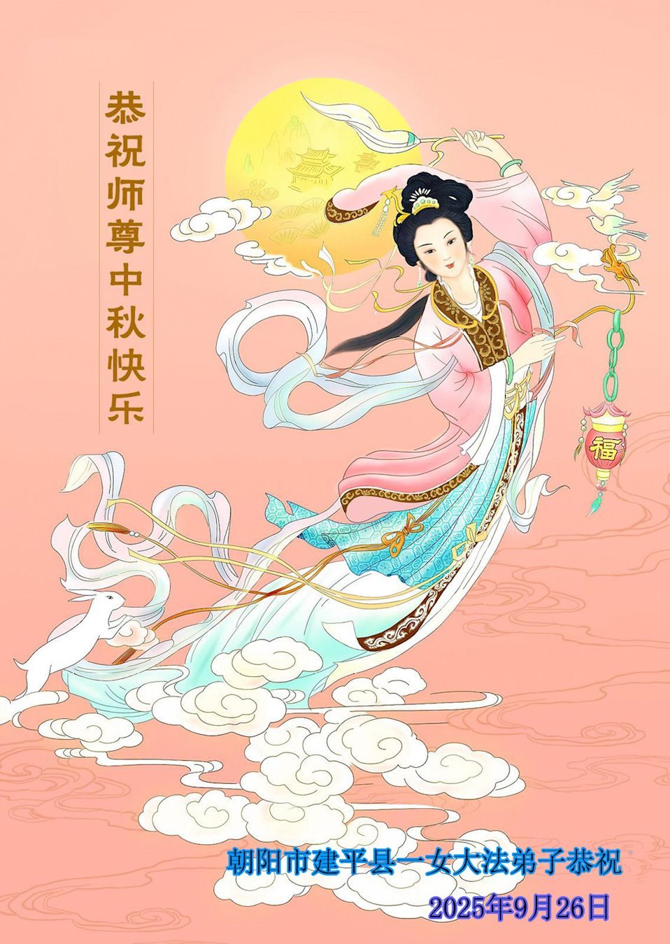 慈悲的师父您辛苦了!恭祝师父中秋节快乐! 辽宁朝阳建平一大法弟子敬上 二零二五年九月二十六日 辽宁省朝阳市大法弟子恭祝慈悲伟大师尊中秋节快乐!