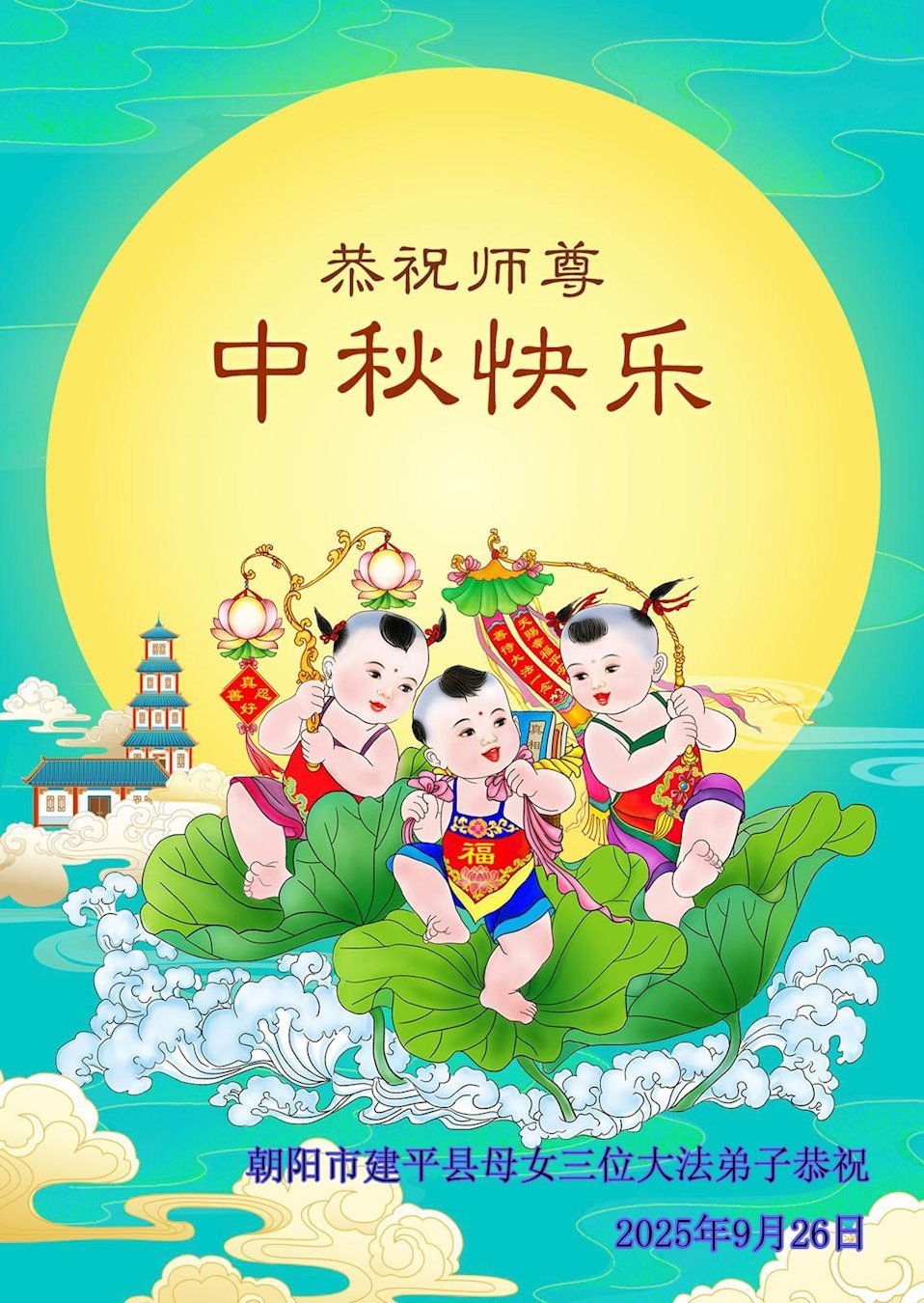 【明慧网二零二五年十月四日】 辽宁省朝阳市母女大法弟子恭祝师尊中秋节快乐!