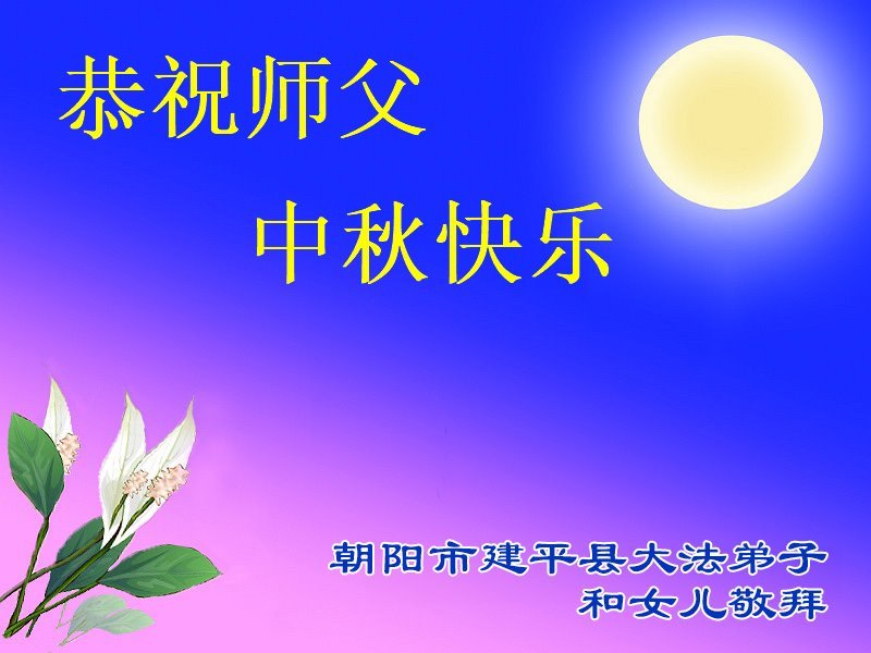 恭祝慈悲伟大的师尊中秋节快乐! 辽宁省朝阳市建平县一女大法弟子敬上 辽宁省朝阳市建平县母女三位大法弟子恭祝慈悲伟大的师尊中秋节快乐!
