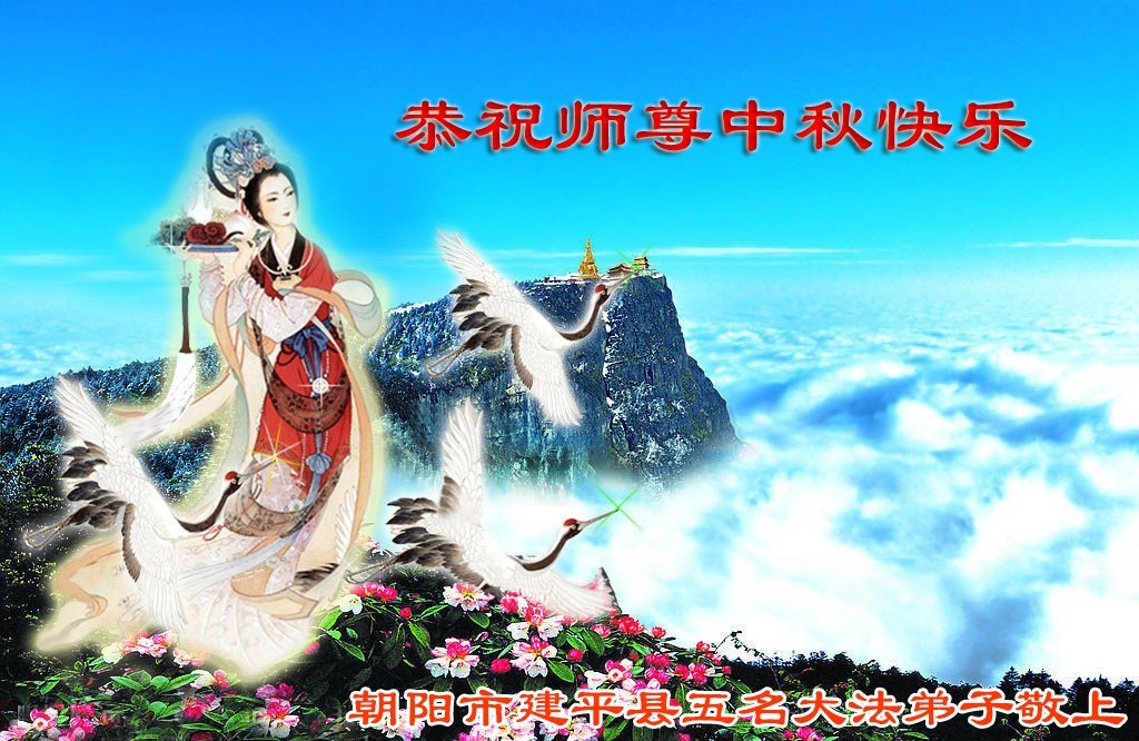 师尊您辛苦了,感恩师尊的慈悲救度! 辽宁省朝阳建平五名大法弟子恭祝师尊中秋节快乐!