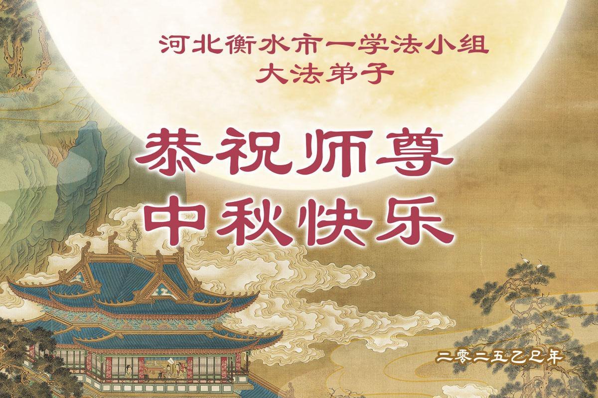 弟子们怀着无比感恩的心恭祝师父中秋节快乐!感恩师父慈悲苦度、感恩师父救度之恩,感恩师父给予弟子智慧与才能,弟子们用世上的语言无法表达对师父感恩与救度,只有精進报师恩。师父辛苦了! 河北省邯郸复兴区北三个学法小组大法弟子敬上 二零二五年九月二十五日 河北省衡水市阜城县一夫妻大法弟子恭祝师父中秋节快乐!