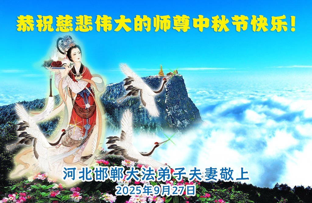 有幸得大法,弟子要珍惜这万古难得的修炼机缘,珍惜师父的慈悲苦度,不辱使命,助师世间行。叩拜师尊! 河北省阜平市一大法弟子携妻子敬上 二零二五年九月二十七日 河北省邢台市大法弟子恭祝师尊中秋节快乐!