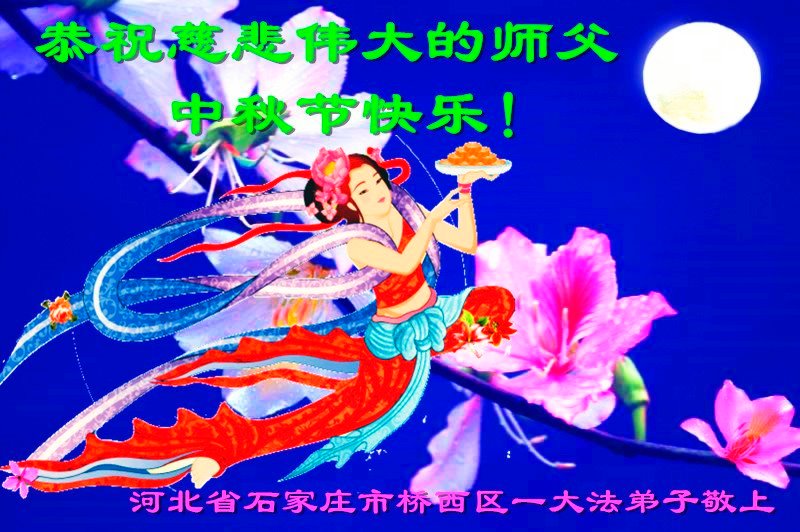 恭祝慈悲伟大的师父中秋节快乐!盼师父早日回国! 河北省一大法弟子携明真相得救的丈夫敬上 河北省衡水市饶阳县一大法弟子恭祝师尊中秋节快乐!