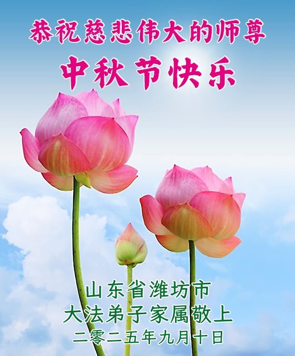 恭祝慈悲伟大的师尊中秋节快乐! 谢谢师父的慈悲救度! 山东诸城妯娌大法弟子敬上 二零二五年九月二十六日 山东省潍坊市寿光市一夫妻大法弟子携全家恭祝师父中秋快乐!