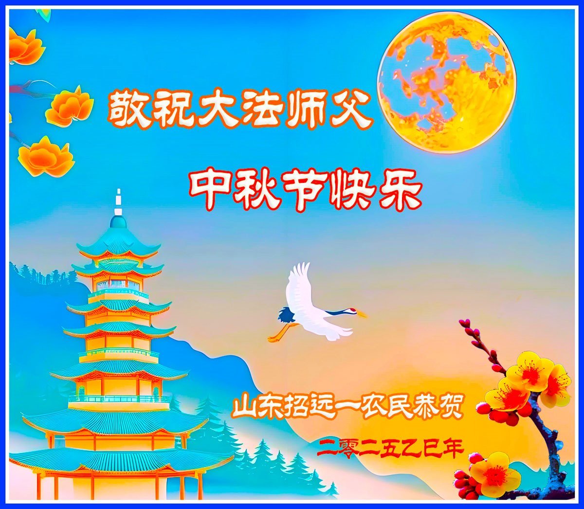 【明慧网二零二五年十月四日】 山东省烟台市牟平区农村一学法组大法弟子恭祝师尊中秋快乐!