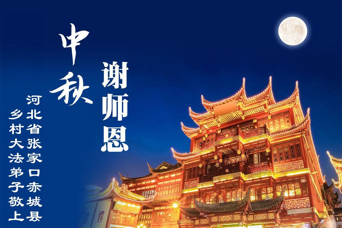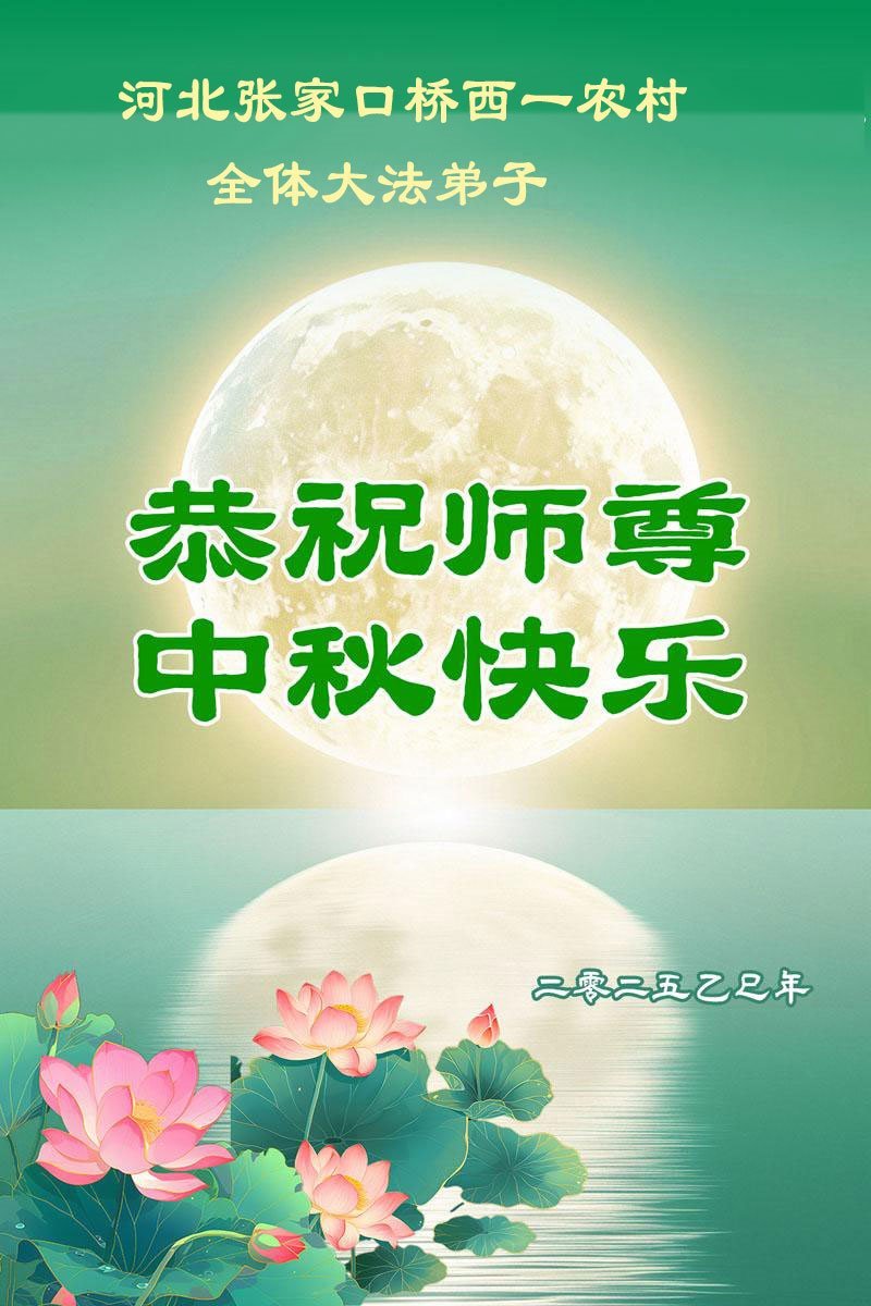 感恩师尊的慈悲保护!弟子们一定做好三件事。 河北省张家口市桥西一农村全体大法弟子恭祝师尊中秋节快乐!