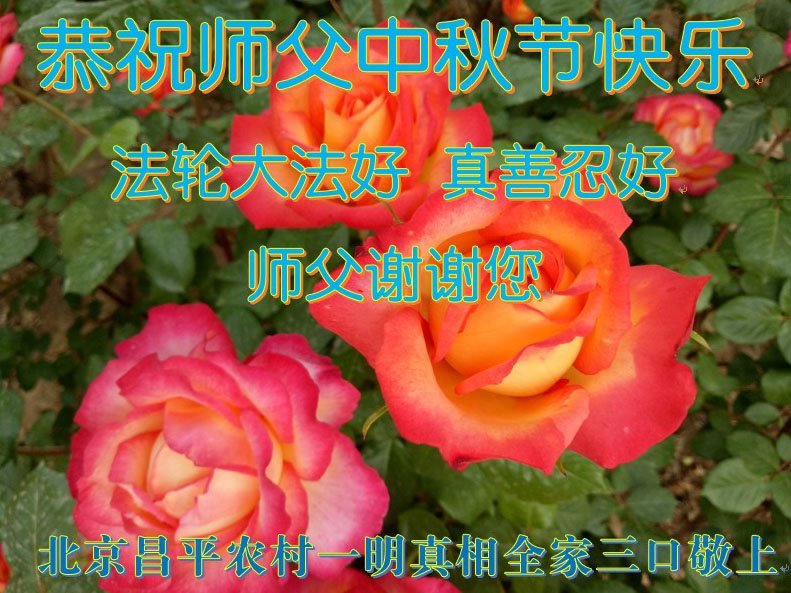 师父您好!恭祝师父中秋节快乐!谢谢师父二十多年的保护! 山东省烟台市招远市一明真相农民恭祝大法师父中秋节快乐!